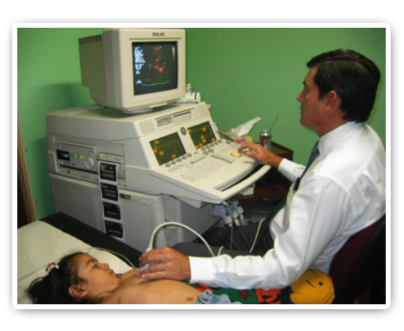 El ecocardiograma estándar, se denomina ecocardiograma transtorácico y se realiza colocando el transductor sobre la pared torácica obteniendo las imágenes a través de ella del tipo ultrasonido, revelando la estructura del corazón, tamaño, alteraciones en los flujos valvulares, medición de presiones intracardiacas y de la movilidad.